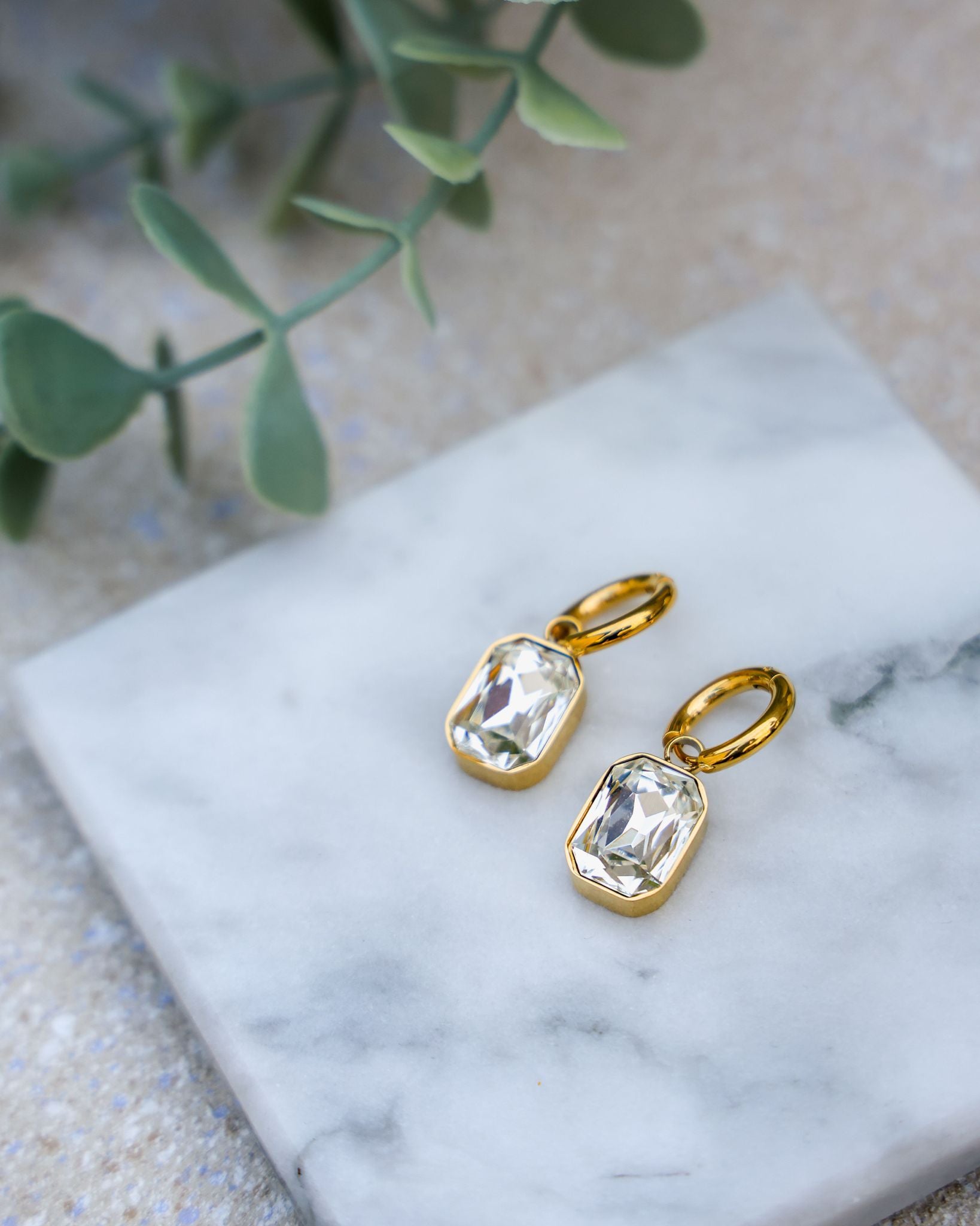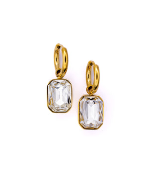 Pretty, timeless crystal pendant drops on a perfect 9mm huggie hoop. The pendant can be removed and worn as a sparkly hoop.